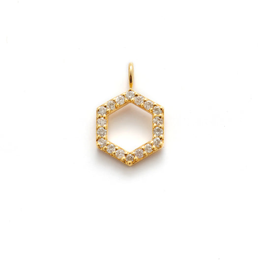 14k Yellow Gold Pave Diamond Minimalist Hexagon Charm 8mm