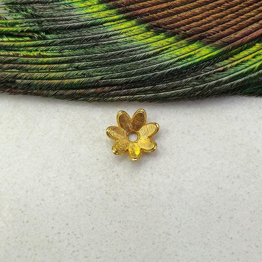 18k Yellow Gold Floral Caps Bead Jewelry Finding 7mm