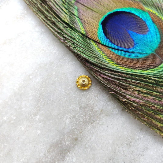 Gold bead caps are a must-have in jewellery making, offering both elegance and durability to your designs. Whether you're crafting a delicate bracelet, a statement necklace, or a meaningful spiritual piece, the right bead caps enhance the beauty of your jewellery. Our collection includes gold-filled bead caps, 18K solid yellow gold bead caps, and rose gold bead caps, ensuring high-quality options for every style. For those designing traditional or spiritual jewellery, we also offer the gold cap for Rudraksha, a perfect blend of style and significance. Adding a Rudraksha gold cap or a Rudraksha with gold cap enhances both the aesthetic and symbolic value of sacred jewellery. With intricate detailing and premium craftsmanship, our gold bead caps provide the perfect finishing touch to any jewellery creation.