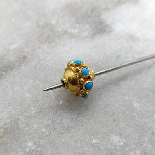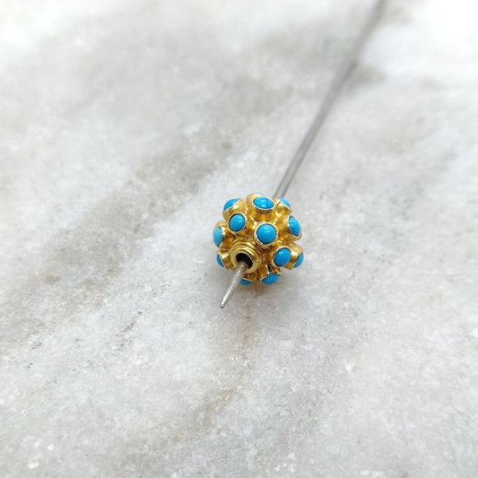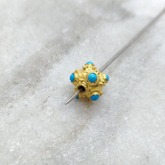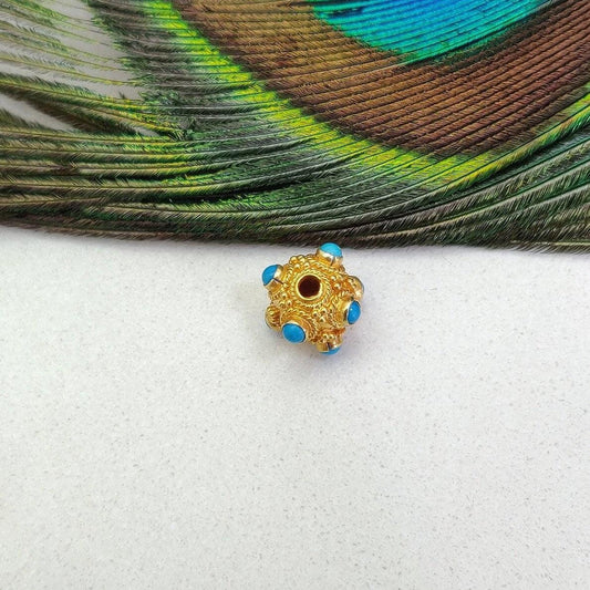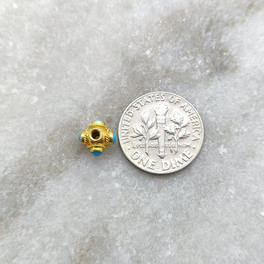 Handmade 18k Yellow Gold Turquoise Stone Spacer Ball Bead