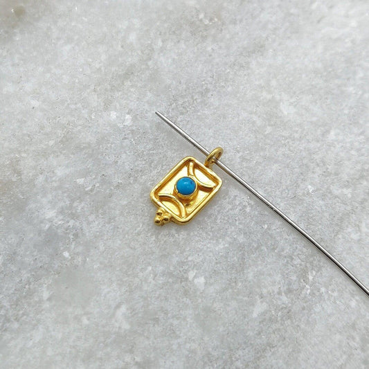 18k Solid Yellow Gold Turquoise Rectangle Charm Pendant 12mm