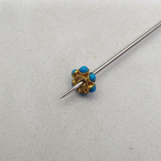 18k Solid Yellow Gold Turquoise Pendant 17mm Antique Jewelry