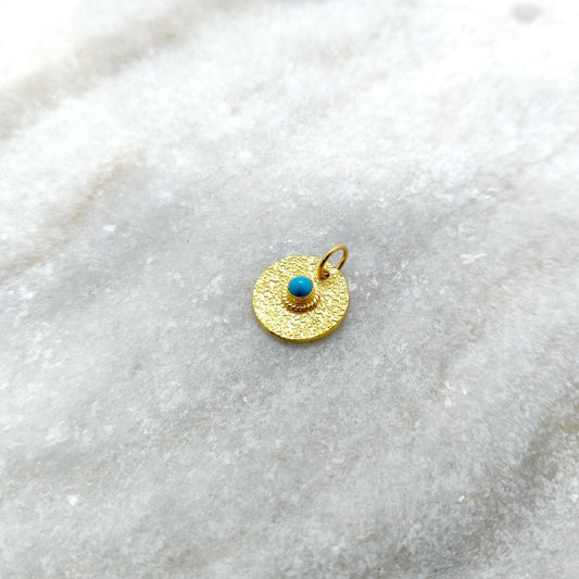 18k Solid Yellow Gold Turquoise Round Charm Pendent 12mm