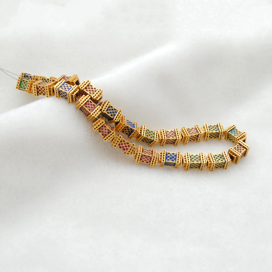 Rectangle 18K Solid Gold Beads DIY Bracelet Necklace Multi Color Enamel 1pc