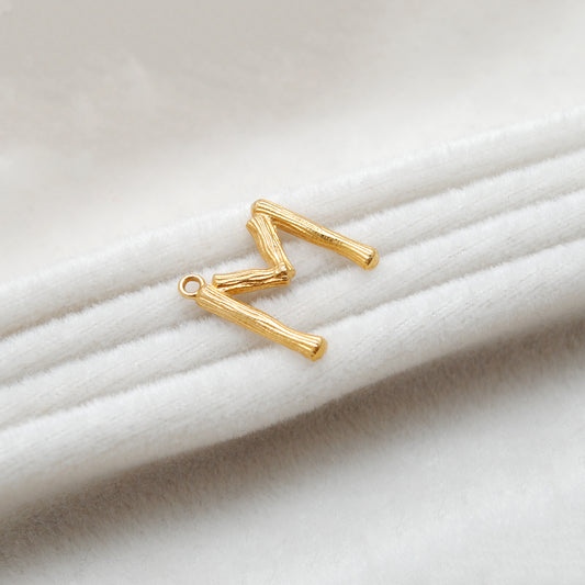 18k Solid Yellow Gold M Initial Letter Charm Pendant