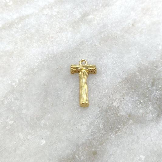 18k Solid Yellow Gold T Initial Letter Charm Pendant