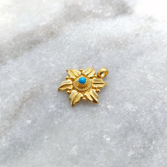 18k Solid Yellow Gold Turquoise Antique Round Pendant