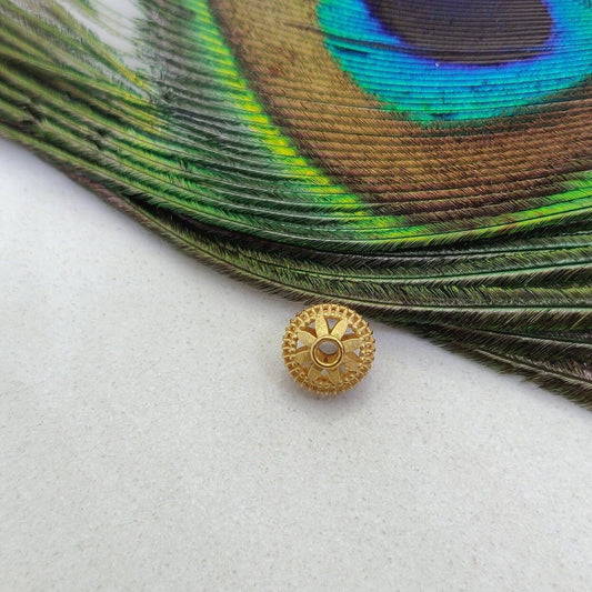 18k Yellow Gold Stone Studded Wheel Beads-11X4 mm