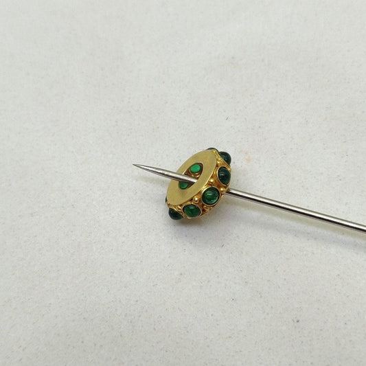 9mm 18k Solid Gold Rondelle Spacer Beads Studded With Emerald Gemstone