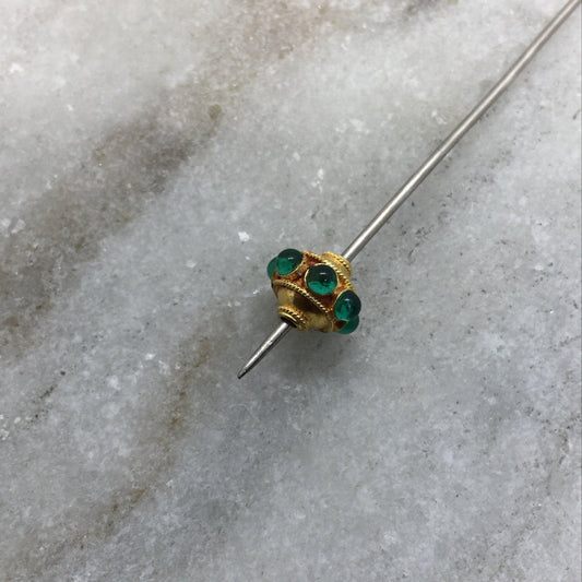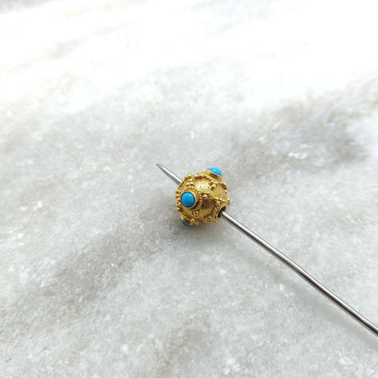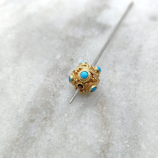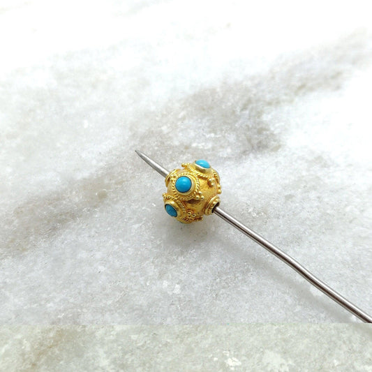 18k Solid Yellow Gold Turquoise Filigree Spacer Ball Beads