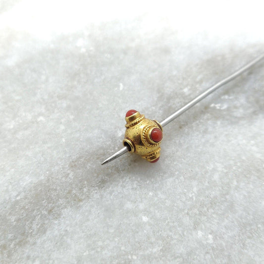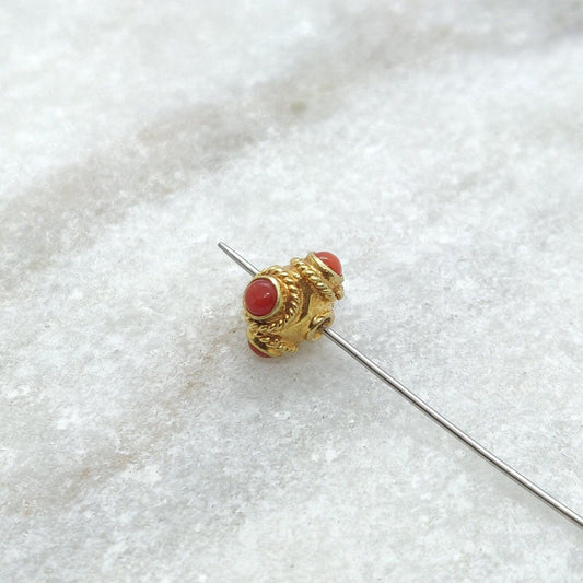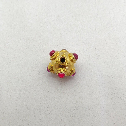 18K Solid Yellow Gold Ruby Stone Studded Fancy Beads - 12X8mm