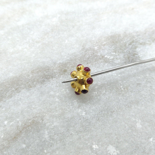 18k Solid Yellow Gold Ruby Wheel Spacer Beads