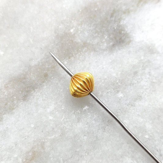 18k Solid Yellow Gold Fluted Ball Spacer Beads 7x9mm