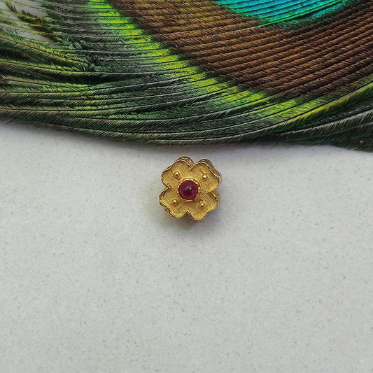 18k Solid Yellow Gold Ruby Flower Spacer Beads 8x7mm