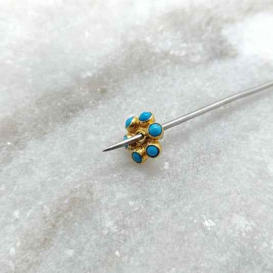 18k Yellow Gold Turquoise Flower Spacer Bead
