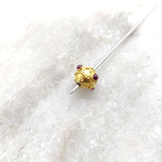 18k Solid Yellow Gold Ruby Ball Spacer Beads 11x10mm