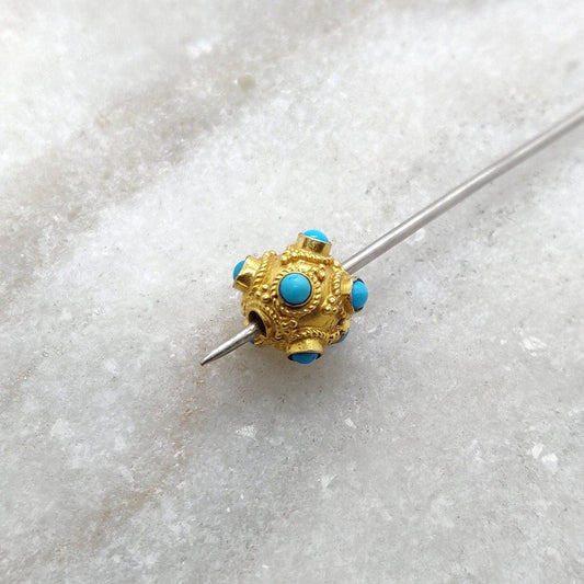 18k Solid Yellow Gold Turquoise Ball Spacer Beads 8mm
