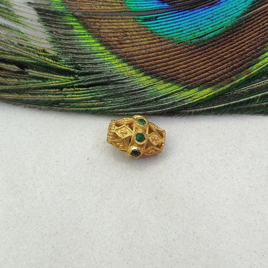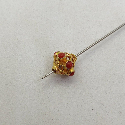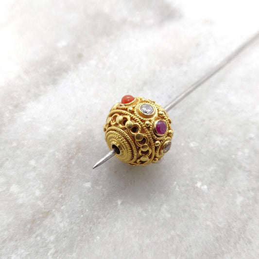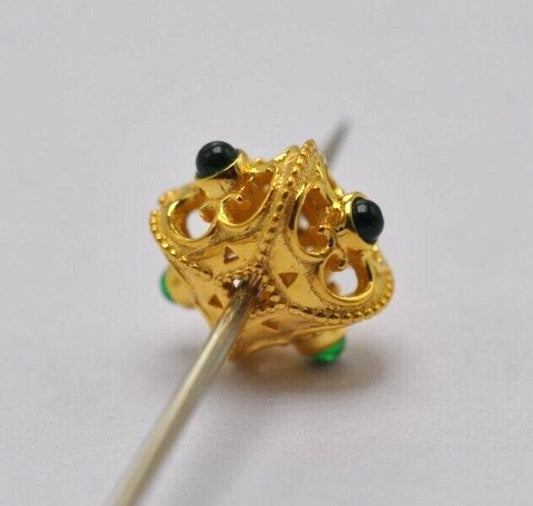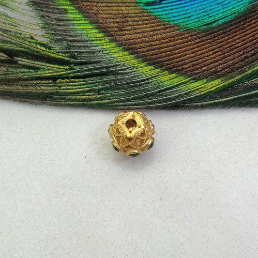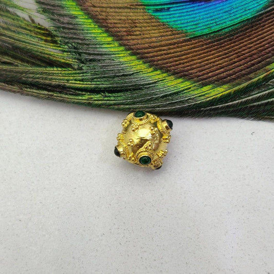 18k Solid Yellow Gold Stone Studded fancy Beads 9mm DIY Crafts