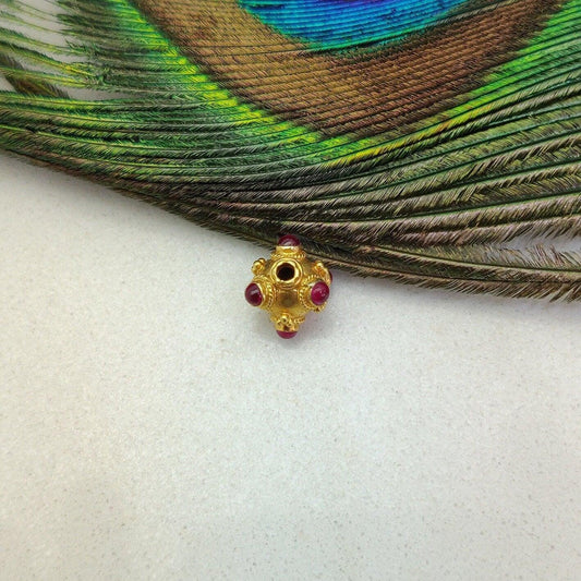 18k Solid Yellow Gold Ruby Antique Spacer Beads 7mm