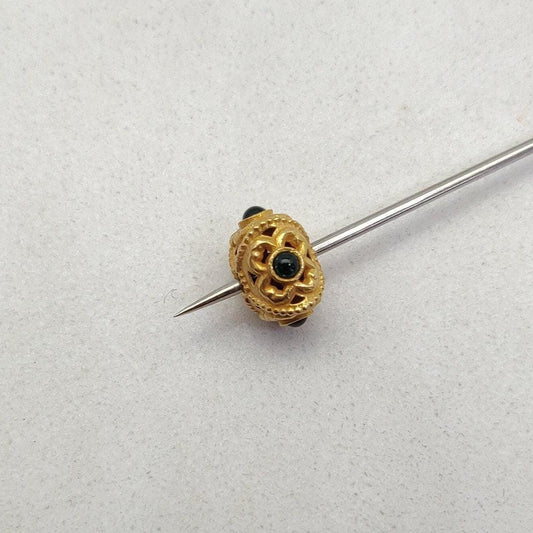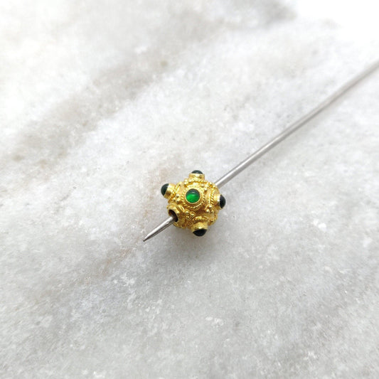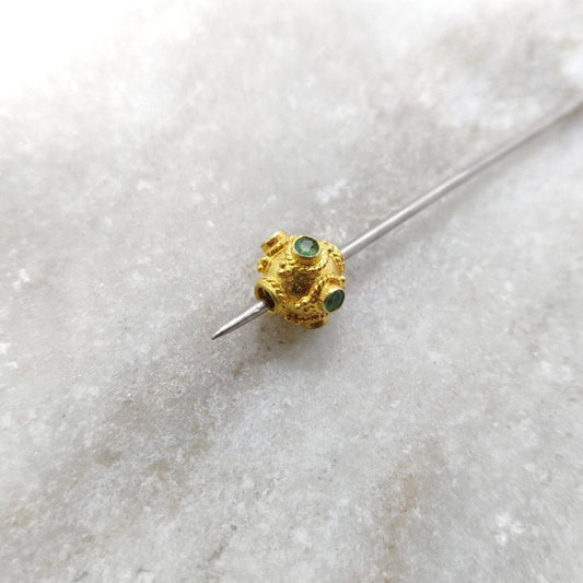 Vintage 18k Gold Rondelle Spacer Bead With Emerald Stone