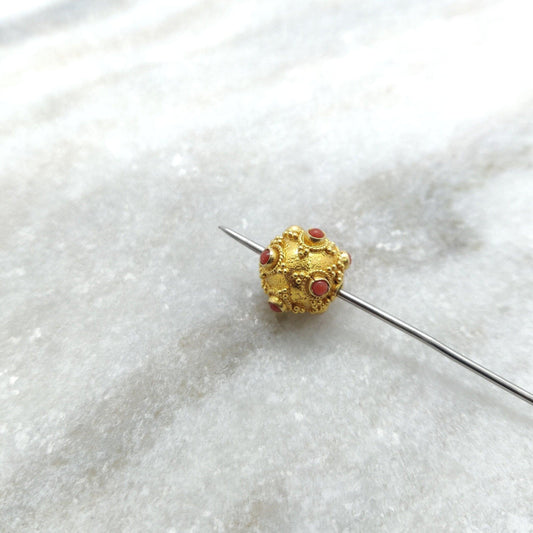 18k Solid Yellow Gold Ruby Vintage Ball Spacer Beads-11 mm