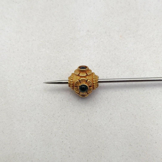 18k Solid Yellow Gold Stones Studded Rondelle Beads