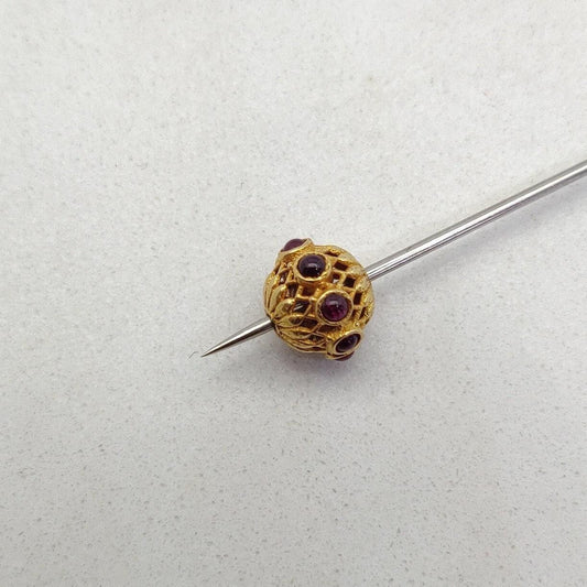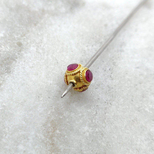 18k Solid Gold Rondelle Ball Beads With Ruby Stone 7mm