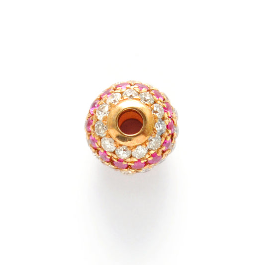 14K Solid Yellow Gold Pave Diamond & Ruby Ball Beads 10 mm