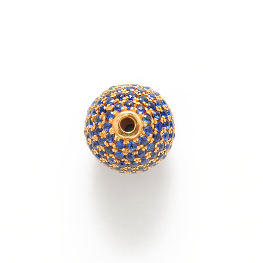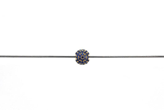 14k Solid Yellow Gold Pave Diamond & Blue Sapphire Round Beads 8mm