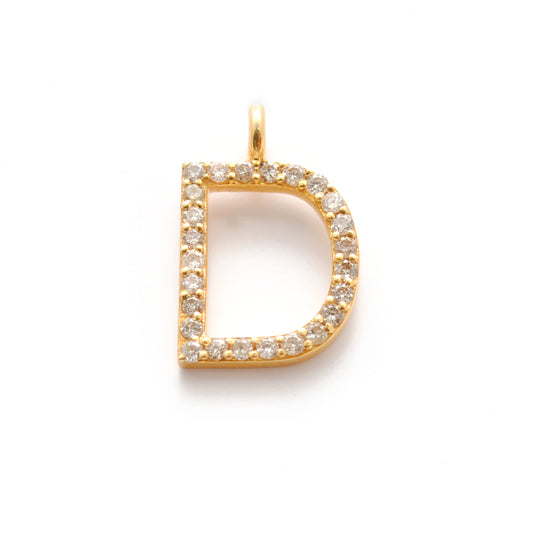 14k Solid Yellow Gold Pave Diamond D Initial Letter Charm