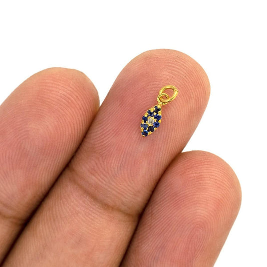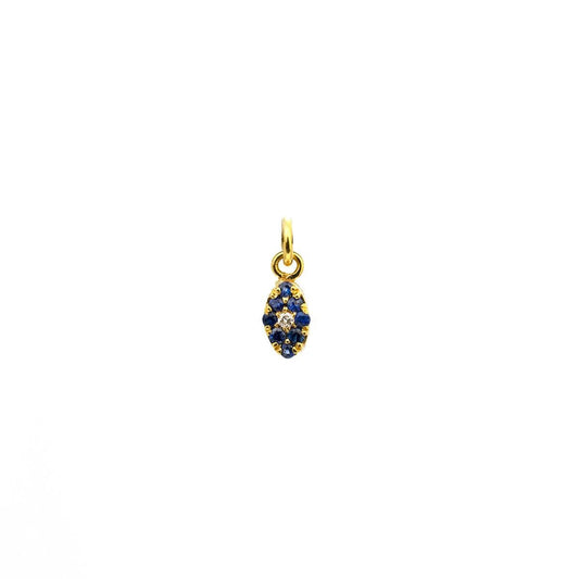 14k Solid Yellow Gold Pave Diamond & Blue Sapphire Evil Eye Charm