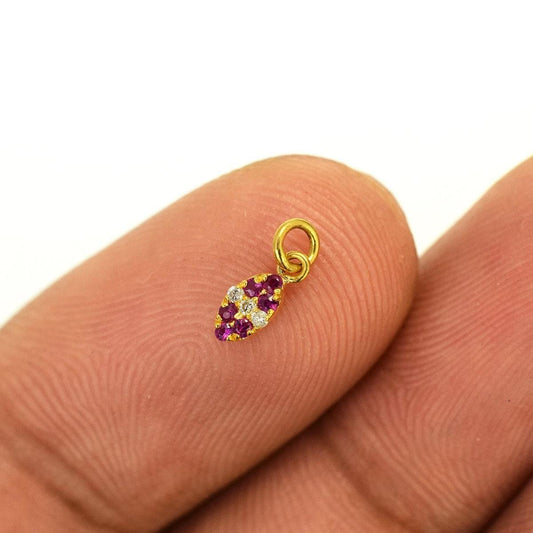 14k Solid Yellow Gold Pave Diamond & Ruby Charm 5x3mm