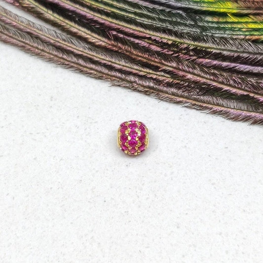 14k Solid Yellow Gold Ball Pave Diamond & Ruby Spacer Beads 8mm