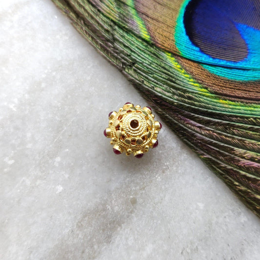 13X10MM 18K Yellow Gold Ruby Round Spacer Beads Finding