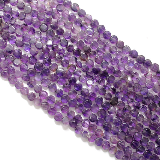 Natural Amethyst Coin Beads – 6-7mm, Center Drilled, 16" Strand DIY Jewelry Making