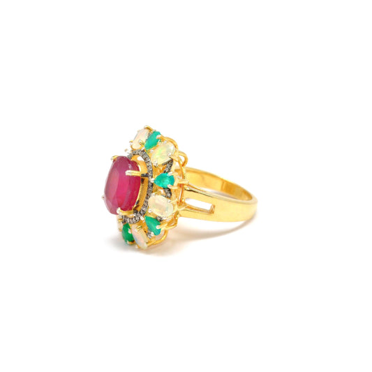 Ruby Oval Cut Fire Opal Halo Ring Size 8 Victorian jewelry