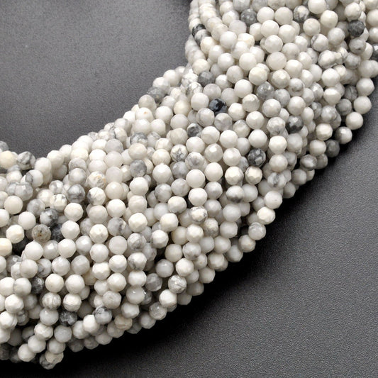 White Howlite Round Faceted Gemstone Beads 12.5" Strand