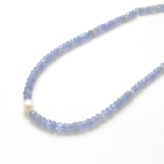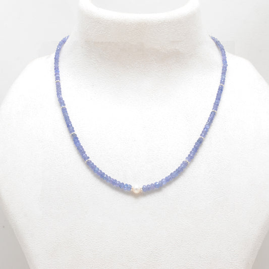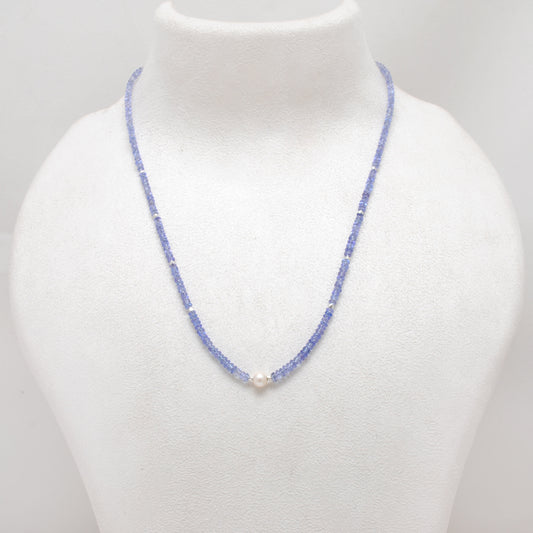 Natural Blue Tanzanite & Pearl Necklace, 925 Sterling Silver, Stylish Beaded Jewelry Gift