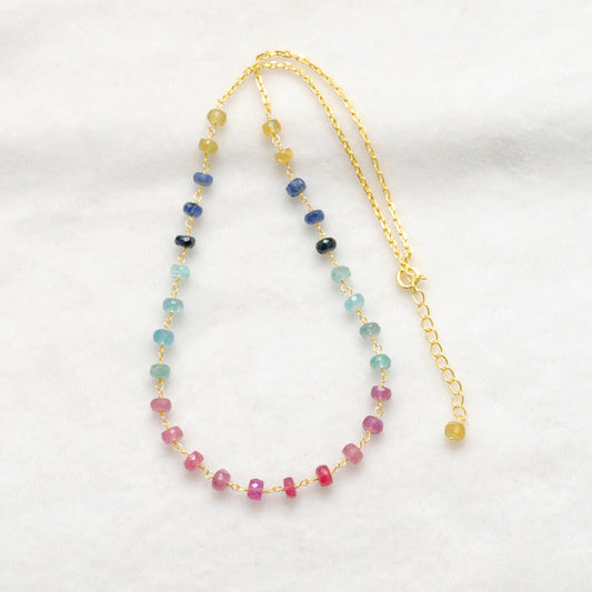 Natural Multi Sapphire Beads Necklace - Christmas Gift