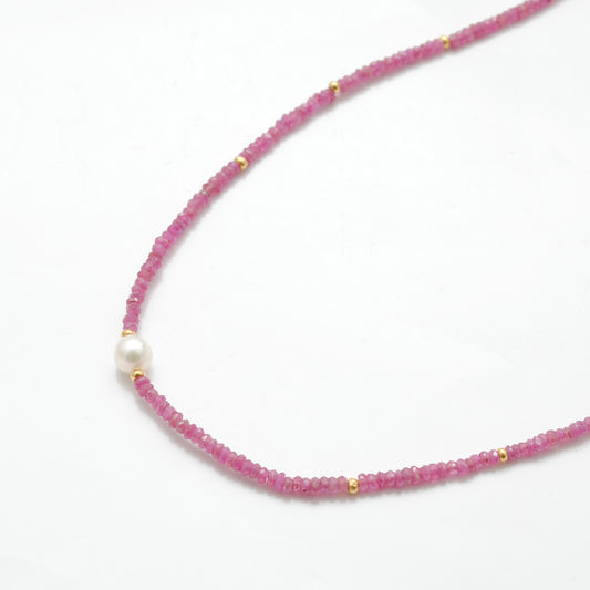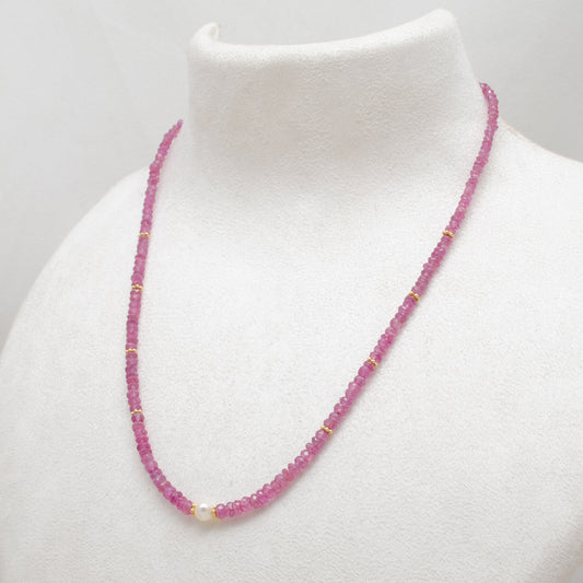 18k Gold Ruby Beaded Necklace Freshwater Pearl Christmas Gift
