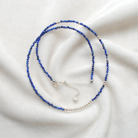 925 Sterling Silver Natural Lapis Lazuli Rondelle Beaded Necklace with Ball Beads