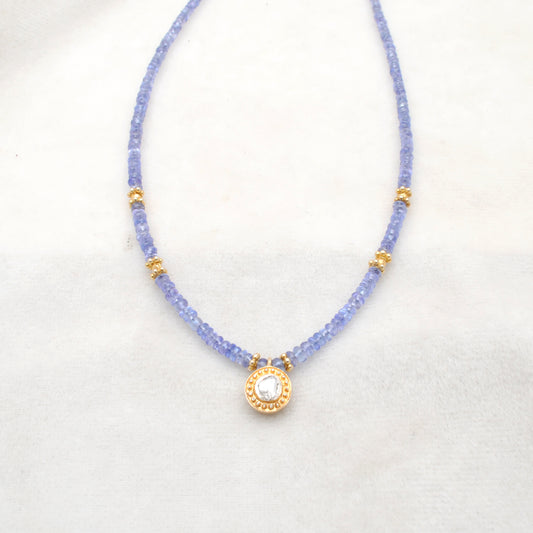 925 Sterling Silver Tanzanite Necklace with Rose Cut Diamond Pendant