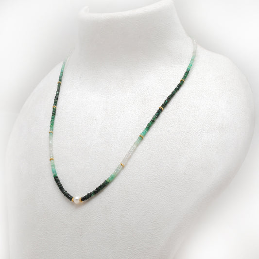 Pearl & Emerald Rondelle Beaded Necklace 18"