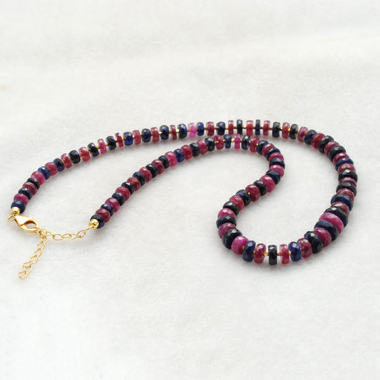 925 Sterling Silver Ruby & Sapphire Beaded Necklace – Gift for Her