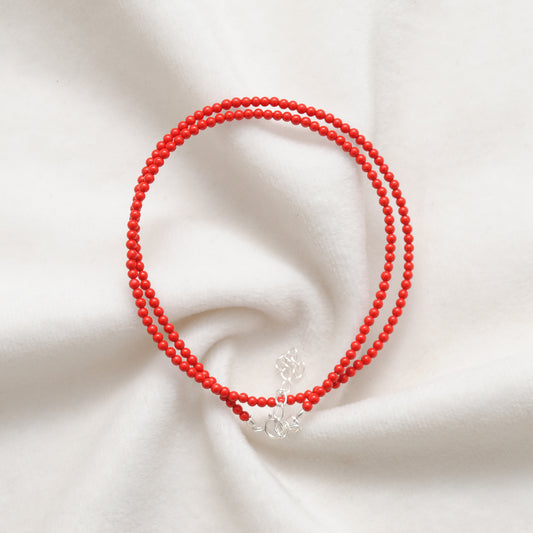 925 Sterling Silver Red Coral Beaded Necklace With Extension