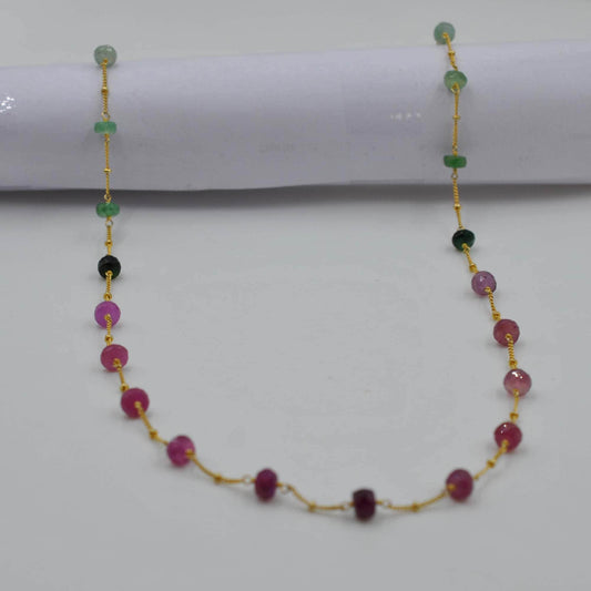 Ruby with emerald sapphire Beaded Gold Plated Necklace
