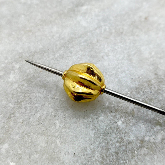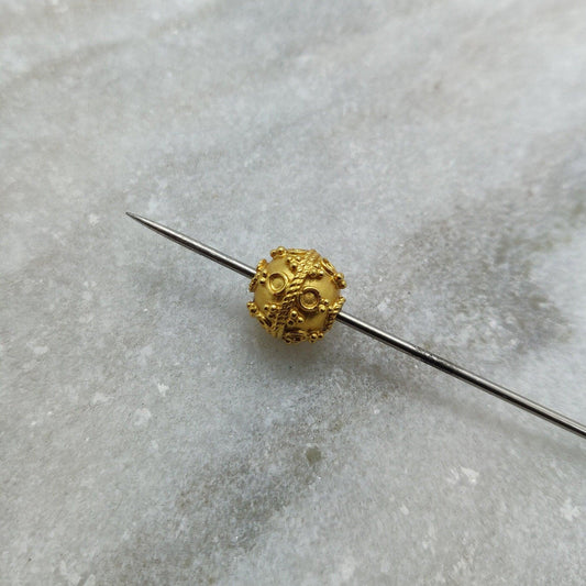 18k Solid Yellow Gold Antique Round Beads, 9X8MM