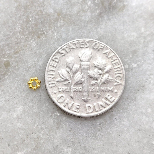 18k Solid Yellow Floral Spacer Ball Beads 4x5mm