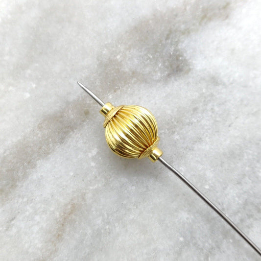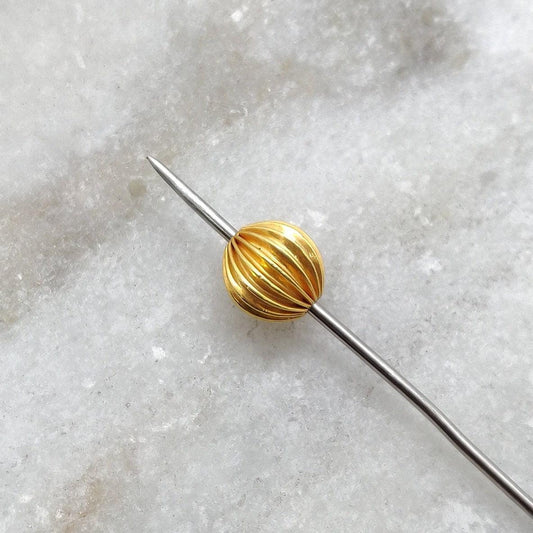 18K Solid Yellow Gold Fancy Fluted Ball Beads 19x13.5mm