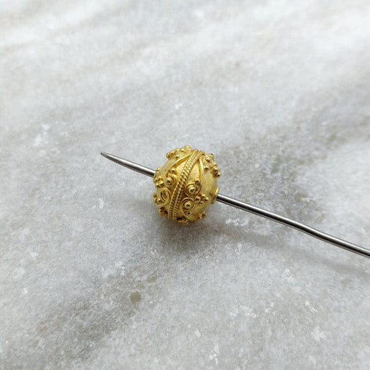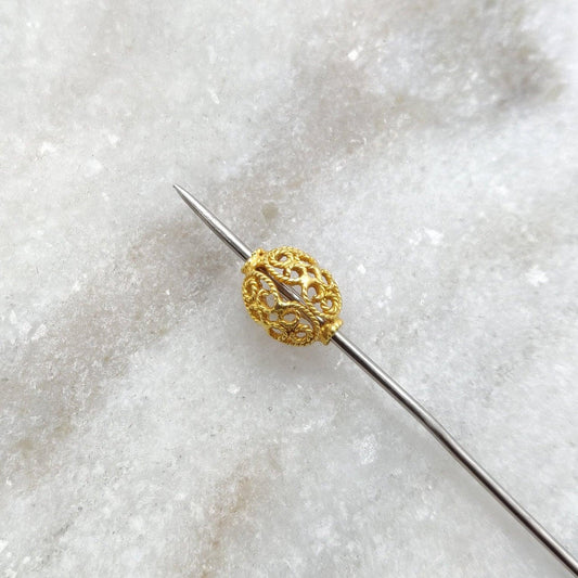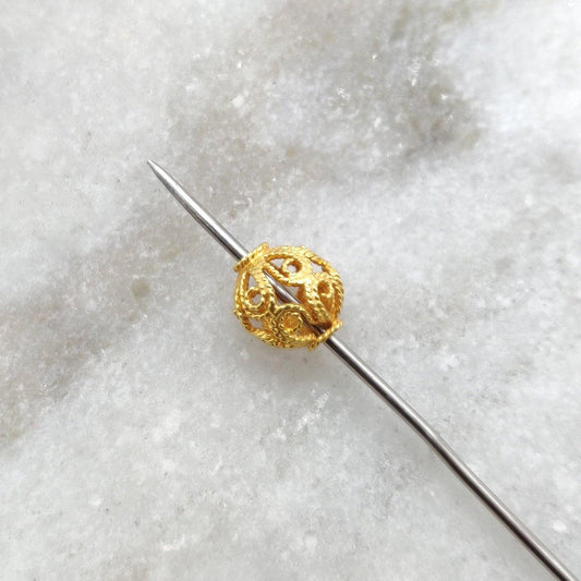 18k Yellow Gold Antique Filigree Oval Spacer Beads Finding 15mm